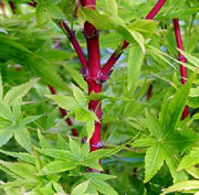 Ecco un esempio di cultivar di acero adatto in vaso la cui corteccia è rossa d'inverno: