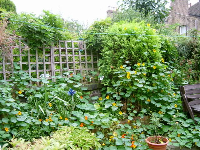 ... ma questo è un giardino in UK... anche lì il Tropaeolum majus gela... fa tutto quello in una stagione, basta seminarlo appena si può all'aperto