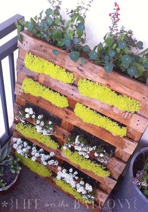<<Vivere in balcone con poco spazio...è il giardino verticale da installare sul balcone. Basta un solo pallet da riempire di terra (come da immagini). E attenzione a isolare bene il fondo per proteggere la parete! Le piante spunteranno da tutte le fessure disponibili>>