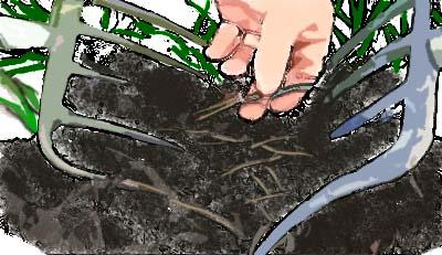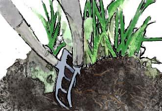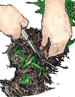 Per grandi zolle, di piante vigorose con radici fittamente intrecciate potrebbe essere necessario la separazione con la pala o due forche (due forche schiena contro schiena nel centro della pianta)