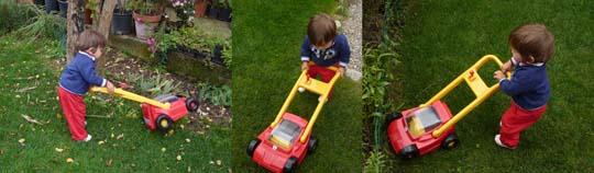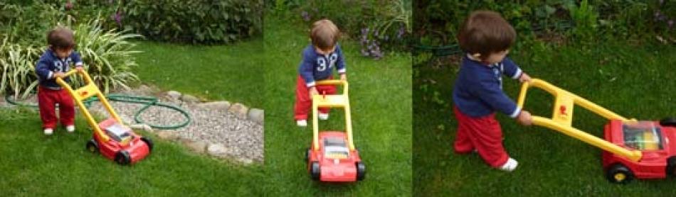 Quest'ultimo al mio piccolo non piaceva affatto, ma da quando ho il nuovo tosaerba elicoidale ne ho preso uno anche per lui, finto (ma no, che è vero!) per bimbi e "tagliamo il prato insieme":