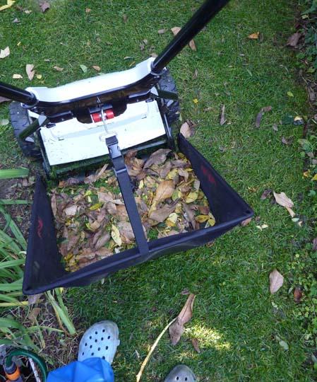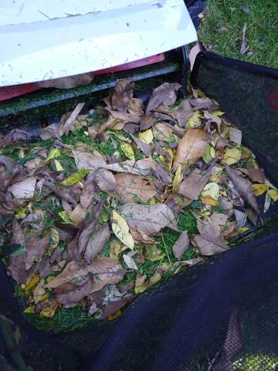 In questa stagione (autunno) col sacco di raccolta funge anche da raccogli-foglie: