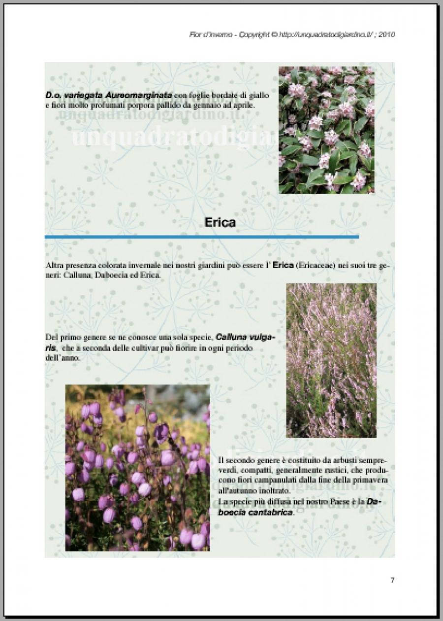 Questo ebook vuole proporre una scelta di possibili piante (fra cui la Camelia e l'Erica) a fioritura invernale che diano al nostro giardino valore aggiunto anche d'inverno ...che sia un "Fior d'inverno" appunto!