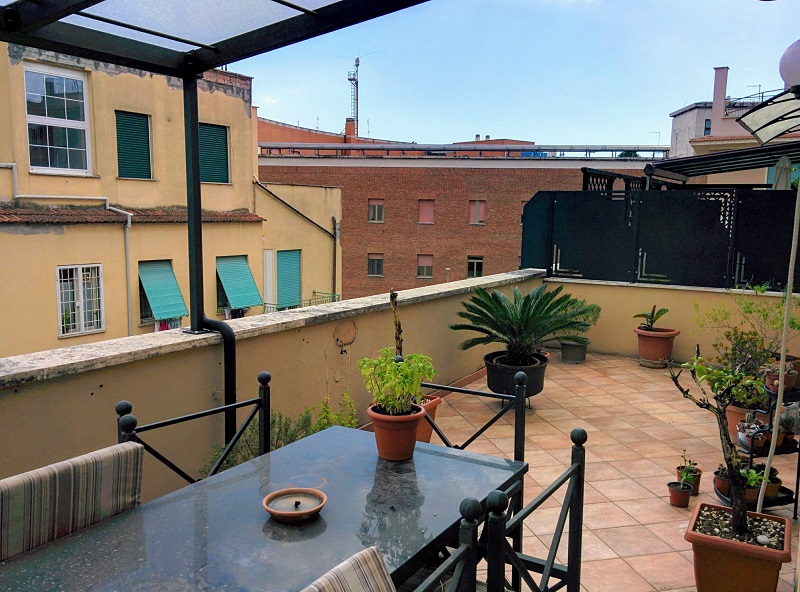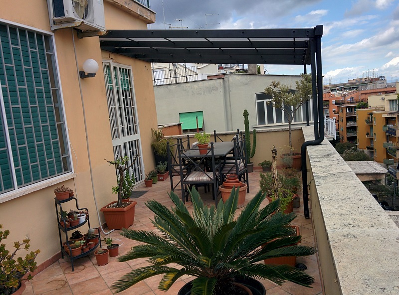 Il terrazzo ha una forma rettangolare ( vedi misure_terrazzo.jpg ) e prende il sole da quando sorge a quando tramonta.