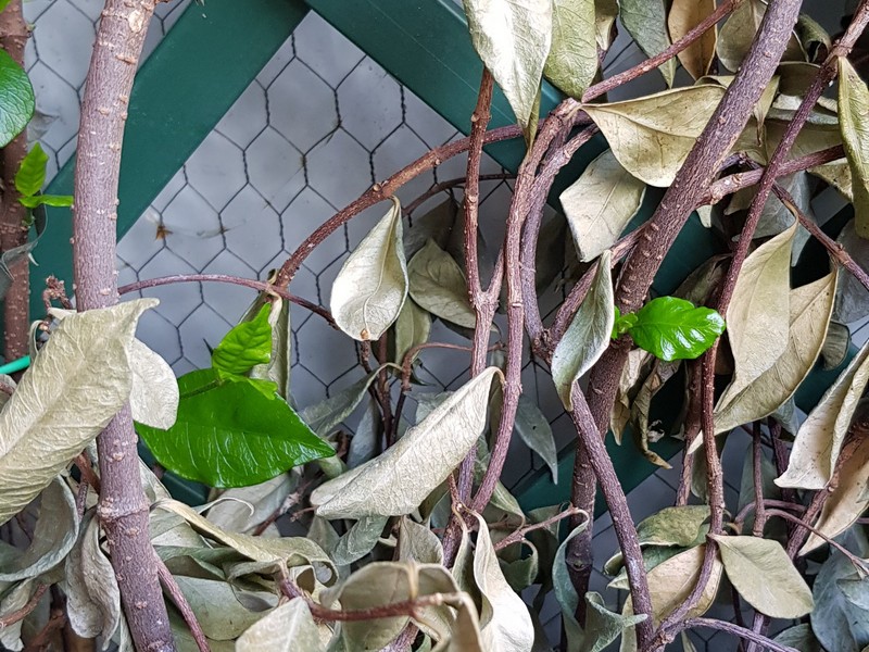 Le nuove foglioline sono nella parte bassa, la parte alta ha pochi sporadici germogli ma tutto il resto secco.