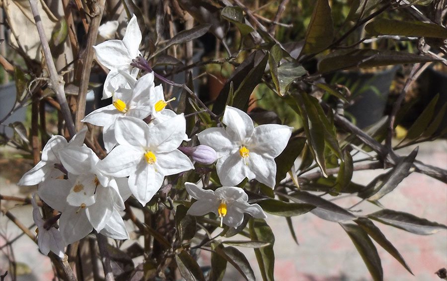 Con l'approssimarsi della bella stagione, ho intensificato le attenzioni alle mie piante e ve ne vorrei sottoporre alcune che presentano malattie a me sconosciute. ovviamente, ogni pianta avrà la sua discussione, questa riguarda un Solanum Jasminoides con fiori blu che ho comprato l'estate scorsa: durante un periodo di assenza per vacanze, ho lasciato un gocciolatore di quelli con bottiglia e mi sono accorta solo dopo che non funzionava bene e aveva allagato la mia pianta