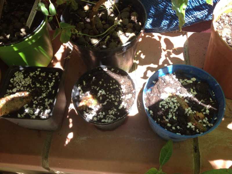 Messe in tre distinti vasetti piccoli in orizzonatale un pocchino con terriccio misto perlite e sabbia.