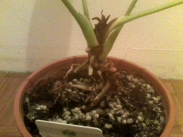 La pianta da quando ci è stata regalata non è mai stata rinvasata e avevamo messo dell'argilla espansa nel sottovaso per aiutare il drenaggio.