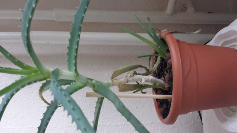 Porbabilmente l'aloe (prima pianta) ha il terricio troppo bagnato. Il germoglio laterale sembra collassato e molliccio. E' esatto?
