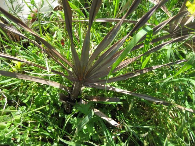 La delicata Bismarchia nobilis ha le foglie un po’ bruciate dal gelo visto che io come esperimento quest’anno non l’ho protetta, ma credo che appena farà le nuove foglie tornerà ad essere la regina delle palme! Importante che sia viva.