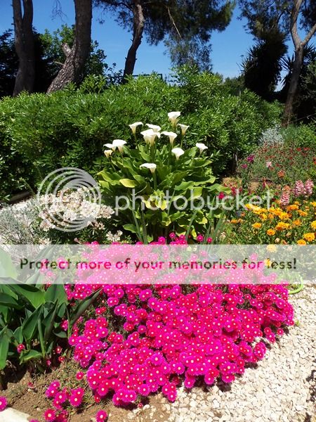 mi piace molto l'abbinamento felicia blu e arctotis rosso e l'angolo con lampranthus,calla e calendula,carino anche il convolvolus in quel vaso decorato...spero entrino a far parte di questo bel quadretto anche le mie viole