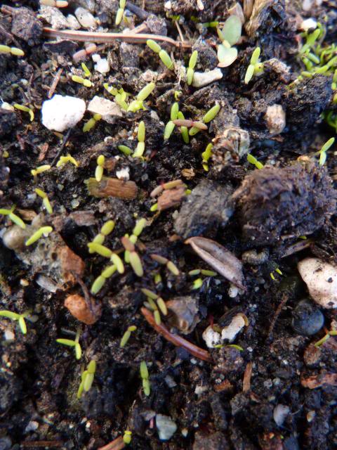 La natura si risveglia, ne sono segni gli allium che spuntano dalla terra (seminati l'anno scorso) ed i semi di portulaca