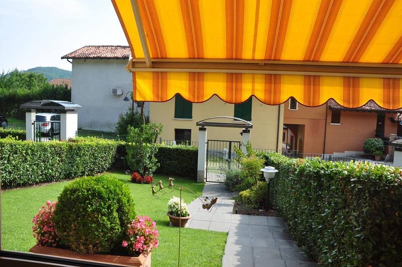 - un giardino sul retro (sopra i box, quindi con pochissima terra), con pergola e una grossa aiuola (con piena terra verso la montagna)