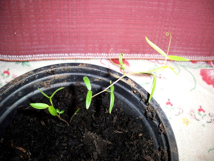 Però ho appena visto il Lathyrus odoratus (pisello odoroso) e ha le foglio un pò più larghe, ma dai viticci sembra lei..forte magari, la mia piantina, è una specie della stessa famiglia?