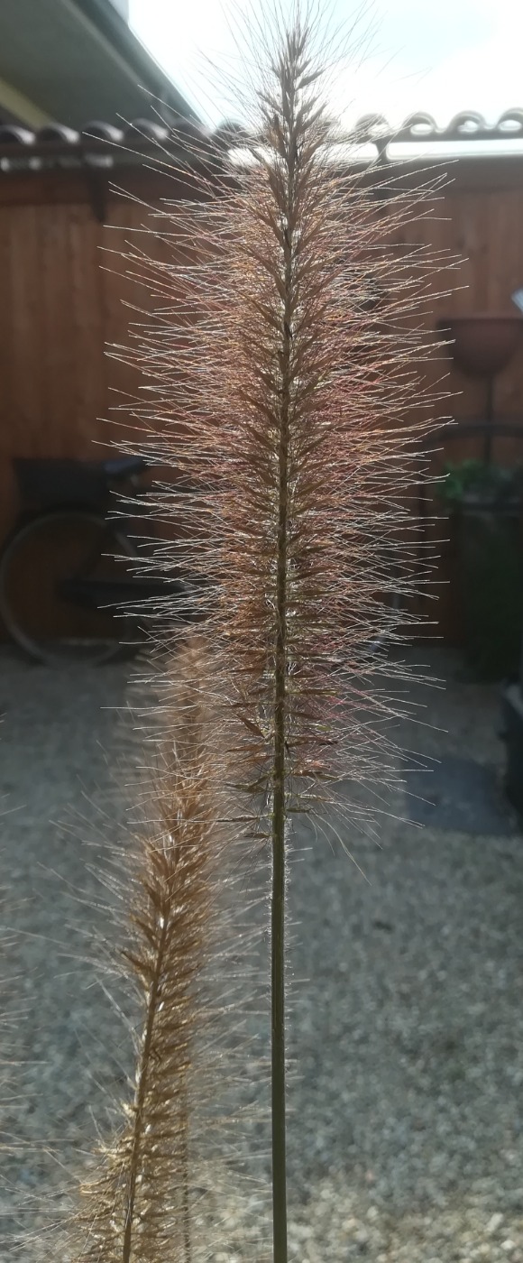 Ciao a tutti, sapendo della mia passione per le graminacee ornamentali, mio marito mi ha regalato questo Pennisetum cartellinato "Hameln", ma mi sembra piuttosto strano (anche se pure in rete ho trovato foto di Hameln che assomigliano a questo!). Ho già un paio di P. varietà Hameln, sono più piccoli, con spighe più chiare e più piccole (queste sono più o meno lunghe 15 cm) e anche gli steli fogliari sono più stretti. Insomma, a me sembra un'altra varietà, anche se non so dire quale