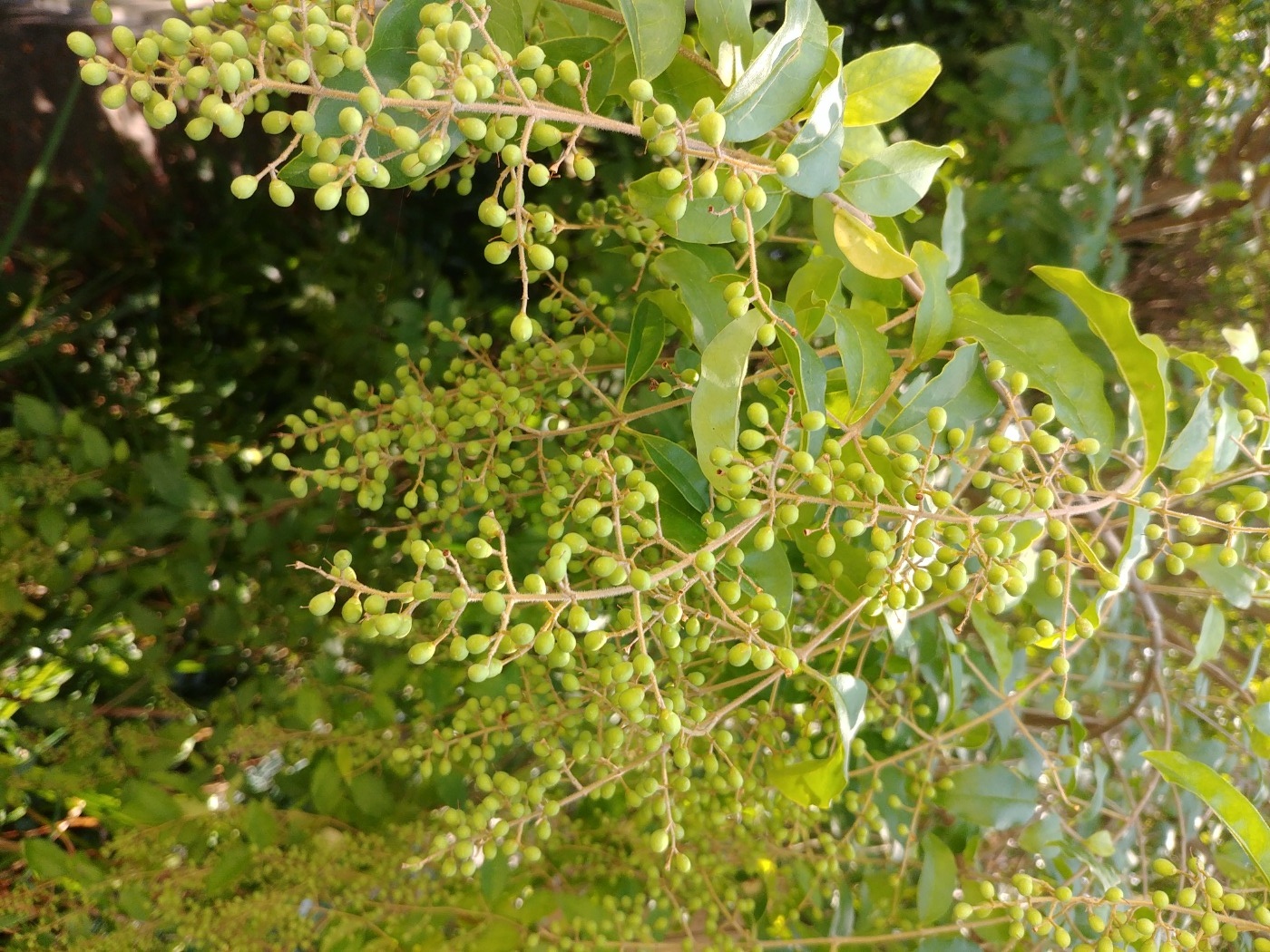Oramai alta più di 3 metri, allego una foto. Ha bellissime grappoli di piccole bacche, al momento verdi. I fiori erano bianchi.