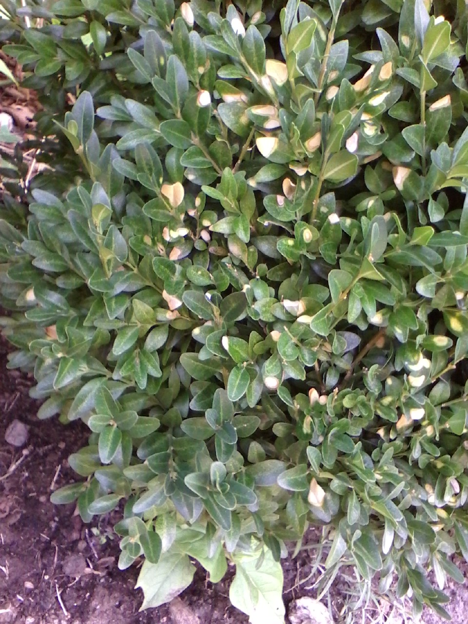 Forse ho scoperto la mia problematica..bruciature da schizzi d 'acqua rovente del tubo di gomma rimasto al sole. Mio padre annaffia i geranei sopra i bossetti non curante a volte dell'acqua surriscaldata.