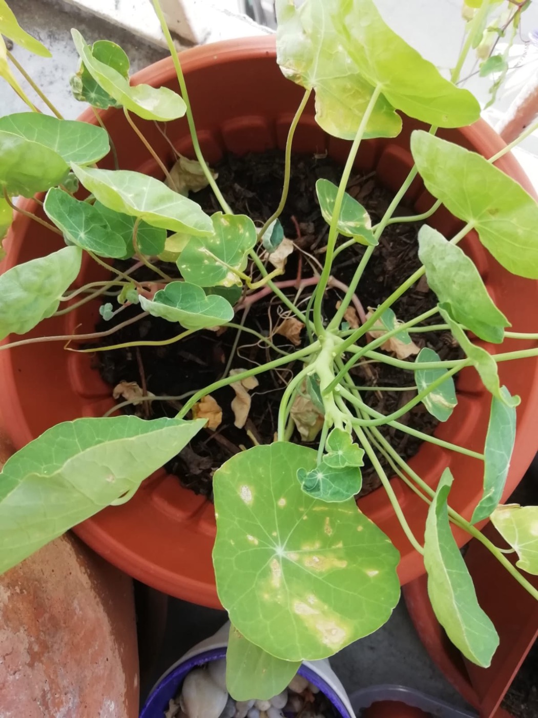 avrei una domanda per quanto riguarda il nasturzio. Ne ho uno coltivato da seme questa primavera sul terrazzo, mattina in ombra, pomeriggio purtroppo molto assolato e caldo. Il nasturzio in questione è in una posizione abbastanza ombreggiata, anche se probabilmente in alcuni momenti riceve sole diretto di questi caldi pomeriggi estivi. E' da un po' che le foglie hanno cominciato a seccare, ingiallendo a macchie.