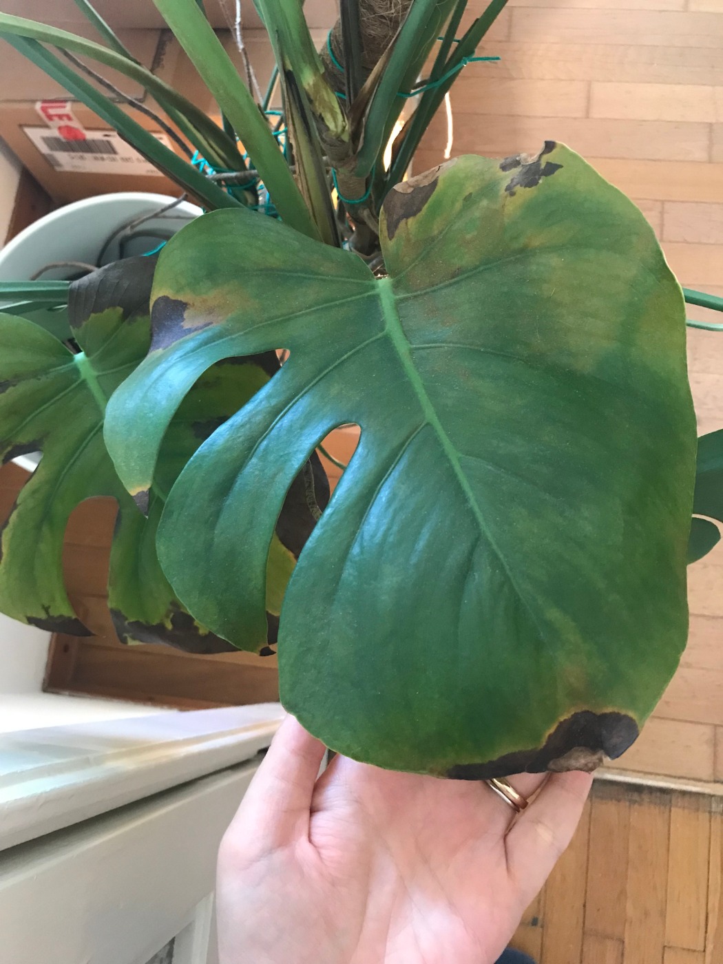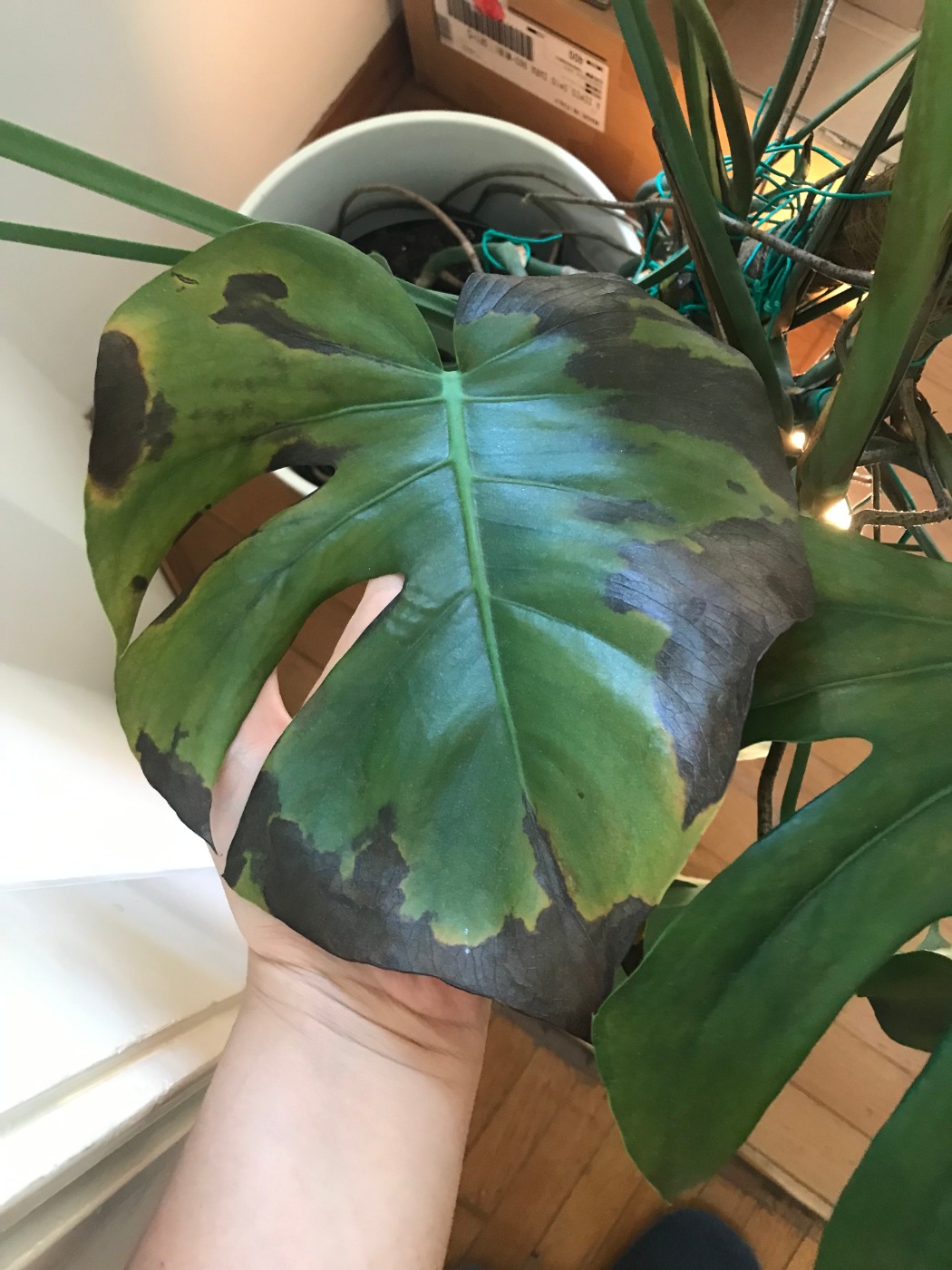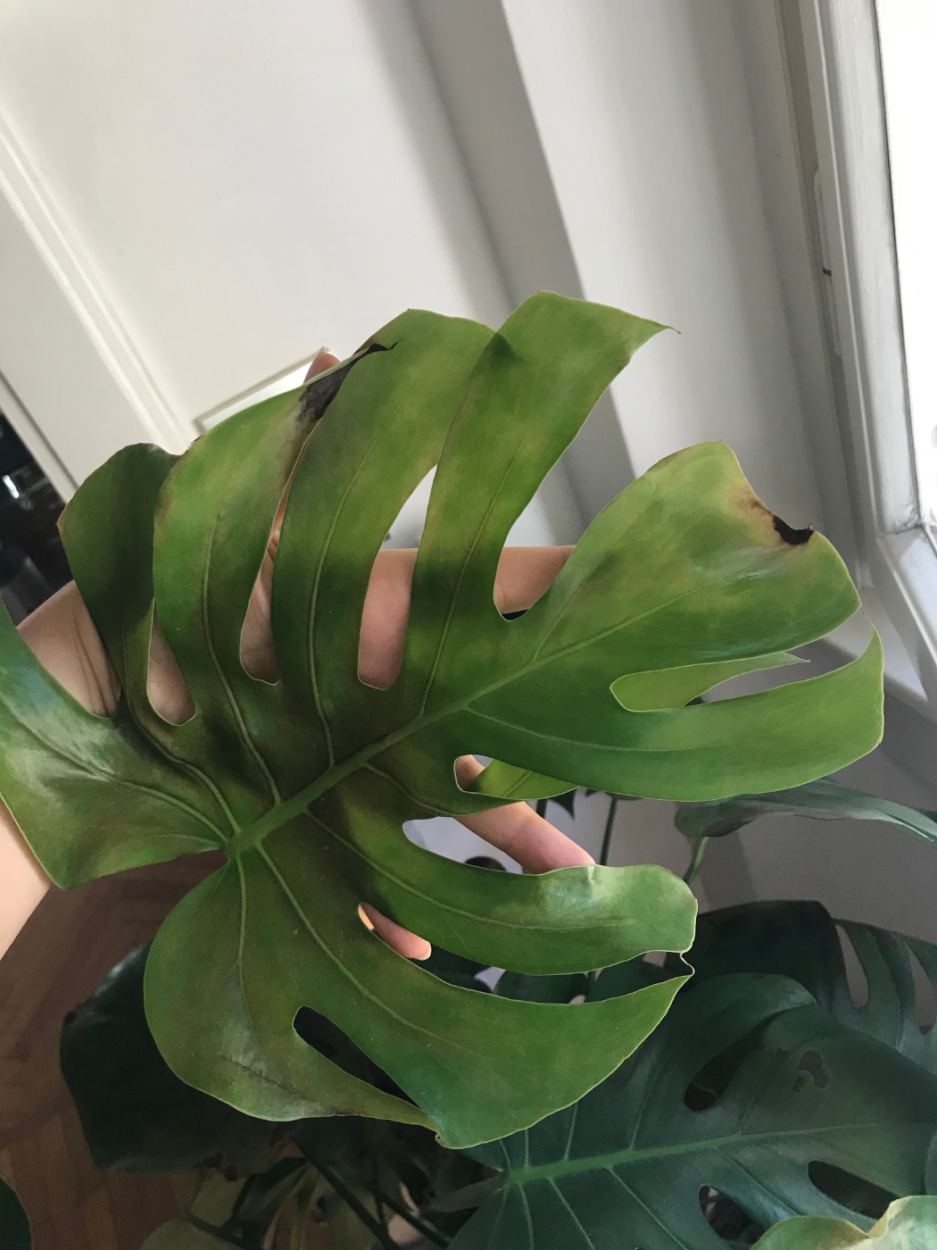 Buongiorno a tutti, ho un problema con la mia monstera e spero possiate aiutarmi. Ce l'ho da circa 3 anni e non mi ha mai dato particolari problemi. Le do acqua una volta alla settimana tutto l'anno e l'ho travasata soltanto una volta perchè è cresciuta tanto da quando l'ho comprata. Ho usato terriccio universale e sotto argilla espansa per drenare. Quattro mesi fa ho traslocato (non so se sia una coincidenza) e ho cercato di metterla in un posto con la luce simile a quella della vecchia casa. Ovviamente ho continuato con le stesse dosi d'acqua di sempre, ma ha iniziato a stare male! Prima si è macchiata di nero, poi sono apparse macchie di marrone più chiaro (allego foto). Sono nate tre nuove foglie, una è diventa subito nera, mentre le altre erano belle, ma dopo qualche settimana hanno iniziato a macchiarsi di marrone in maniera diffusa! Non capisco cosa abbia perchè sono tutte macchie diverse tra loro. I fusti alla base sono sodi e verdi e sembrano stare bene, mentre il fusto di una delle nuove foglie non mi sembra molto sano.