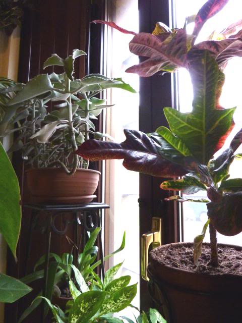 Ecco la foto della postazione! Fino al primo pomeriggio tengo la serranda abbassata per più di metà, se no la luce sarebbe diretta e ho paura che si brucino le foglie. Durante il giorno poi, quando ne ho la possibilità, apro tutta la serranda e la luce che c'è è quella che vedi in foto. Ovviamente in caso di bella giornata!