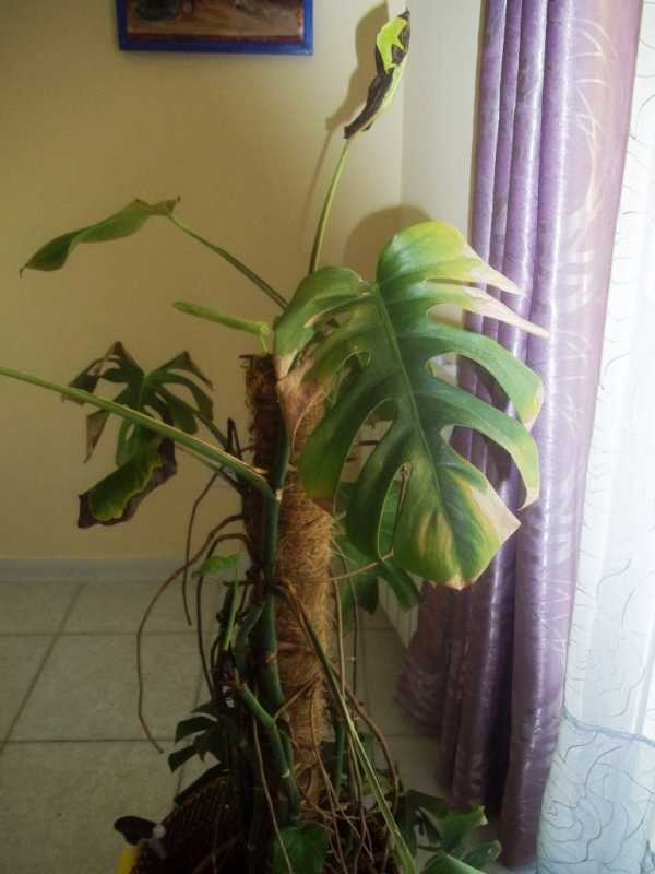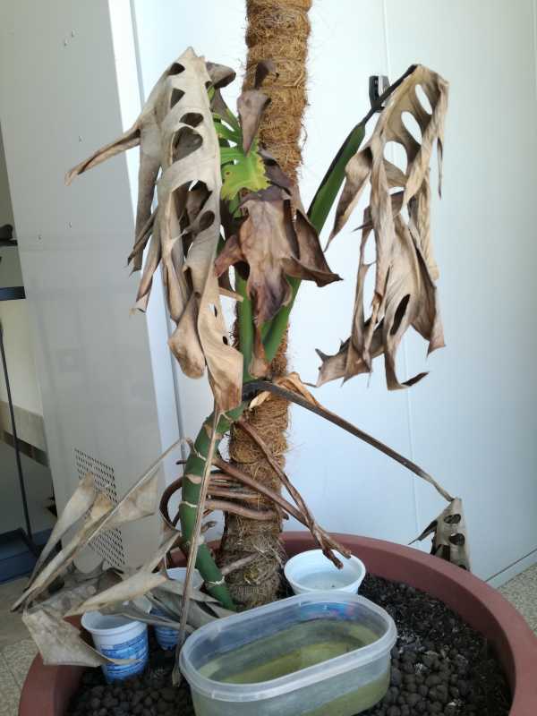Monstera deliciosa sin. Philodendron pertusum-Filodendro con foglie secche