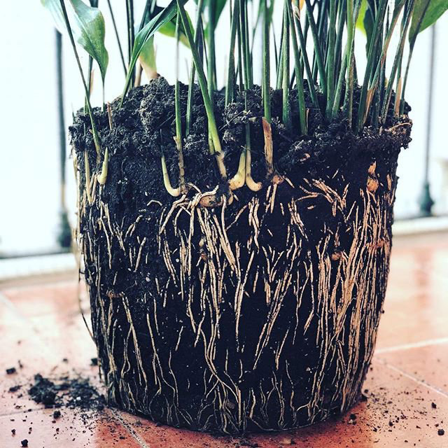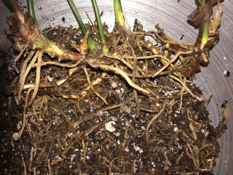 Radici di aspidistra vuote e mezze morte: