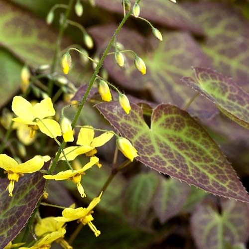 Un paio di specie e cultivar di Epimedium sono sempreverdi, e molti sono colorati di rosso in primavera e bronzo in autunno e inverno. I fiori, che ricordano acquilegie o orchidee in miniatura, o "ragni" color bianco, giallo, rosa, arancio, o lavanda compaiono in primavera. (Se le foglie delle cultivar sempreberde sono macchiate da neve o gelo particolarmente intenso, meglio tagliare basse prima della nuova crescita a fine inverno)