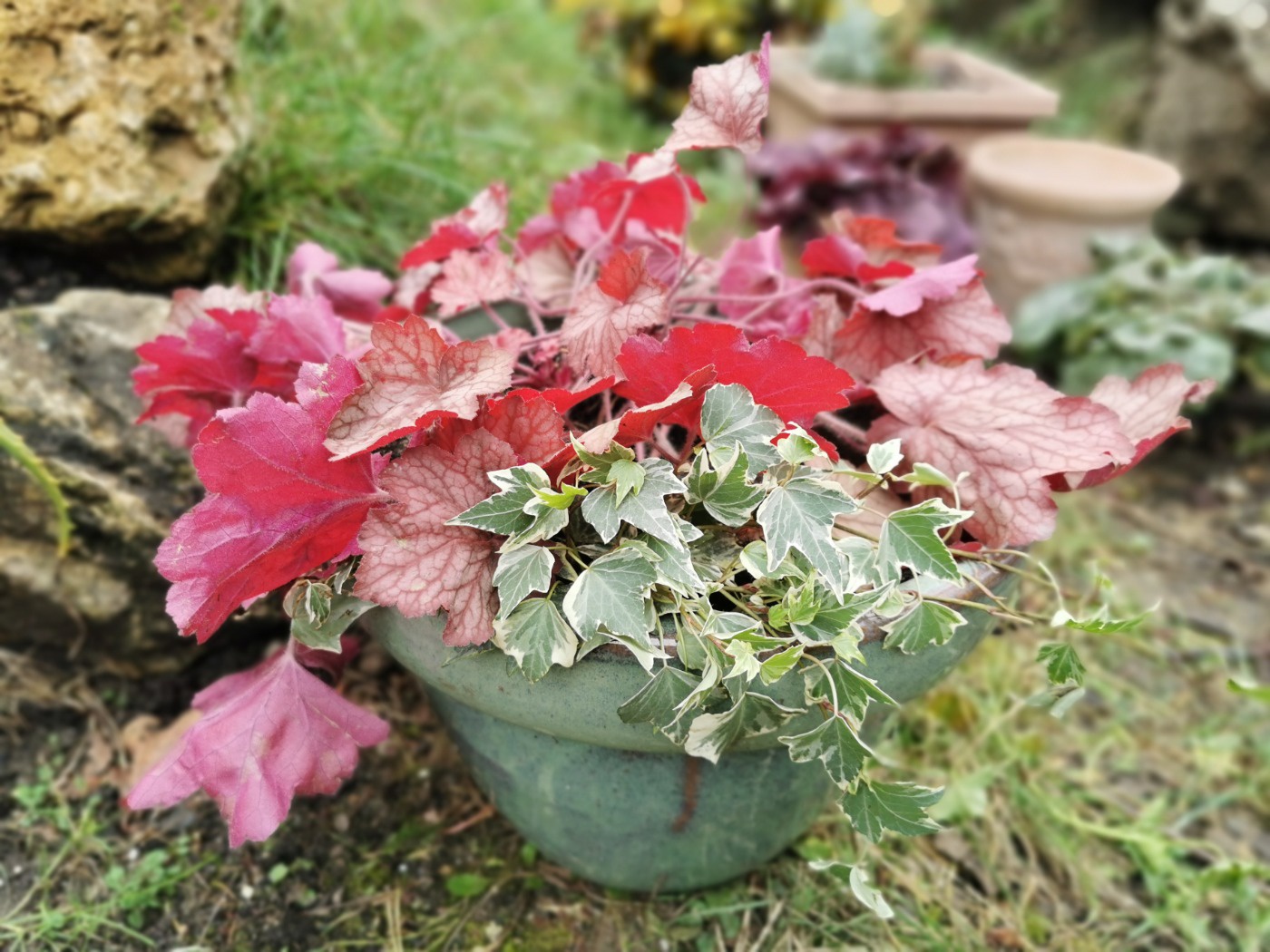 Ma che brava, complimenti! Anche il modo in cui hai fotografato i due vasi di Euchera ed edera variegata sono molto belle e suggestive. In generale, hai creato dei vasi graziosi, che poi hanno il vantaggio di essere spostati qua e là, a secondo della necessità o dell' ispirazione.