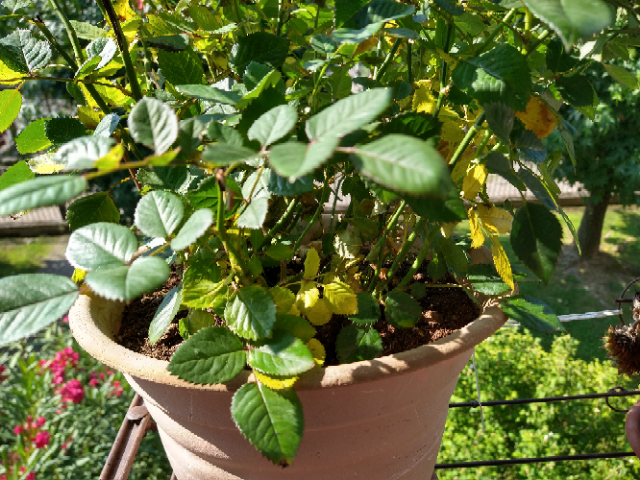 sul mio balcone ho da qualche mese un vaso di rose che ha sempre avuto foglie verdi.