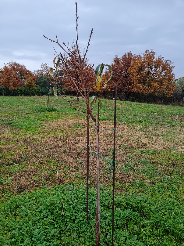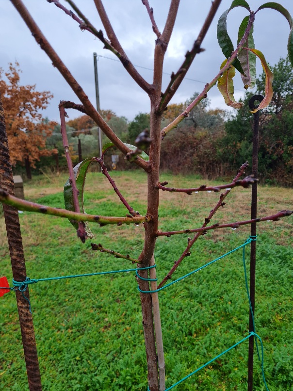 Buonasera a tutti. Forse qualcuno può aiutarmi. Metto sotto alcune foto di un pesco che ho messo a dimora a maggio di questo anno. L'ho lasciato stare fino ad ora, ma vorrei impostarlo per la classica forma a vaso. Consigli? Devo togliere l'astone centrale e lasciare 2-3 branchette che poi saranno le mie branche principali? In che punto tagliereste voi? Mi manca anche una branchetta che mi occupi un lato della pianta, spero lo vediate dalle foto, consigli? Grazie mille, ho paura di fare danno