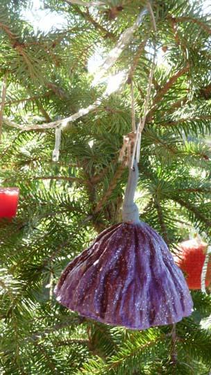 Quest'anno farò un albero (naturalmente sintetico, è tutta la vita che mi batto contro la strage degli innocenti alberi natalizi: da bambina quel povero albero vestito "da circo" dopo il 6 gennaio veniva buttato regolarmente al cassonetto) addobbato con tutte cose raccolte nel bosco intorno casa mia: pigne, cortecce, ghiande, coni, galle di quercia ecc. che ho spruzzato con una vernice rosa antico e cosparso di brillantini argentati'