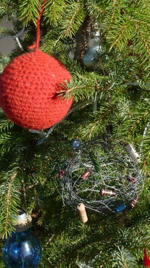 Palla di Natale sapientemente ricamata a maglia e pallina natalizia in stile 'Electro'.