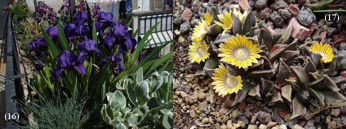 (16) Iris pumila 'Silkie' (17) Nananthus vittatus