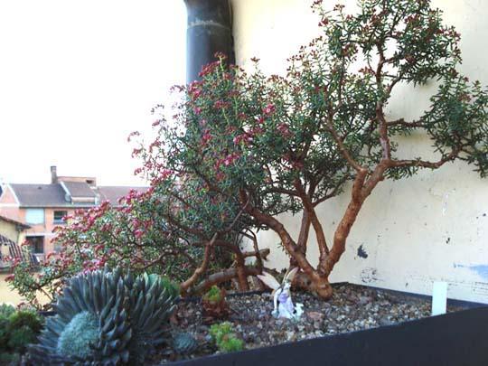 Per finire alcuni simpatici personaggi che abitano il balchino (balcone-giardino): il nano Piantalo, tranquillamente appisolato all’ombra della Quercus coccifera, carezzato dalle fronde del Ceterach officinarum, e la fata Zappina che coccola il suo coniglio Rosikkio, seduta al piede di Crassula sarcocaulis.
