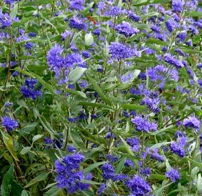 C'è anche un bellissimo arbusto Caryopteris clandonensis (che attira api in quantità ha un bellissimo color azzurro, fiorisce in autunno).