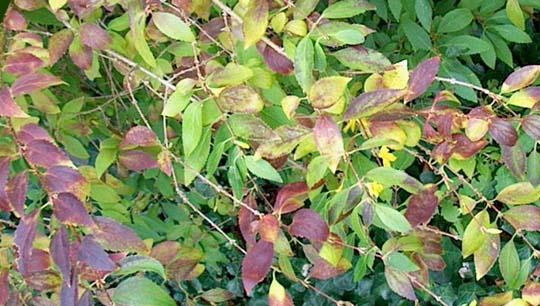 non dà nell'occhio, potrebbe essere un buon ospite per una clematide a fiore piccolo o un rampicante annuale come ipomoea. Molto insolite le cultivar (sconosciute e non coltivate in Italia per quanto ne so) a foglie variegate che potrebbero essere un punto d'interesse per gran parte dell'anno.