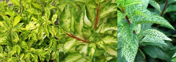 Da sinistra Forsythia 'Golden Times', Forsythia 'Fiesta', Forsythia 'Kumson'