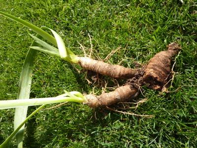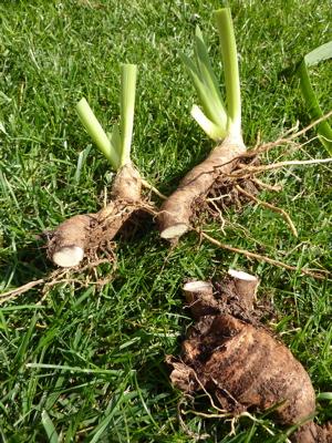 Allora, per prima cosa estraete un ammasso di rizomi con una forca o una vanga.