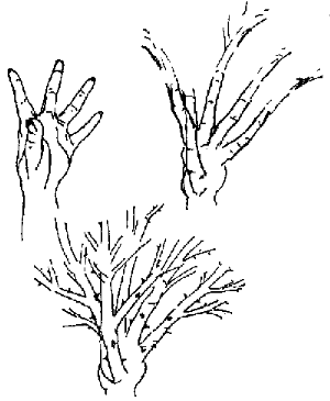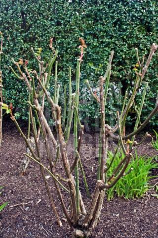 Ibridi di tea e grandiflora: il perfetto cespuglio, dovrebbe avere cinque o sei rami verde chiaro, ciascuno dello spessore di un pollice, che si irradiano in modo uniforme dal centro (la forma è quella di una mano che regge una sfera);eliminare i rami che si incrociano e che vanno verso il centro.